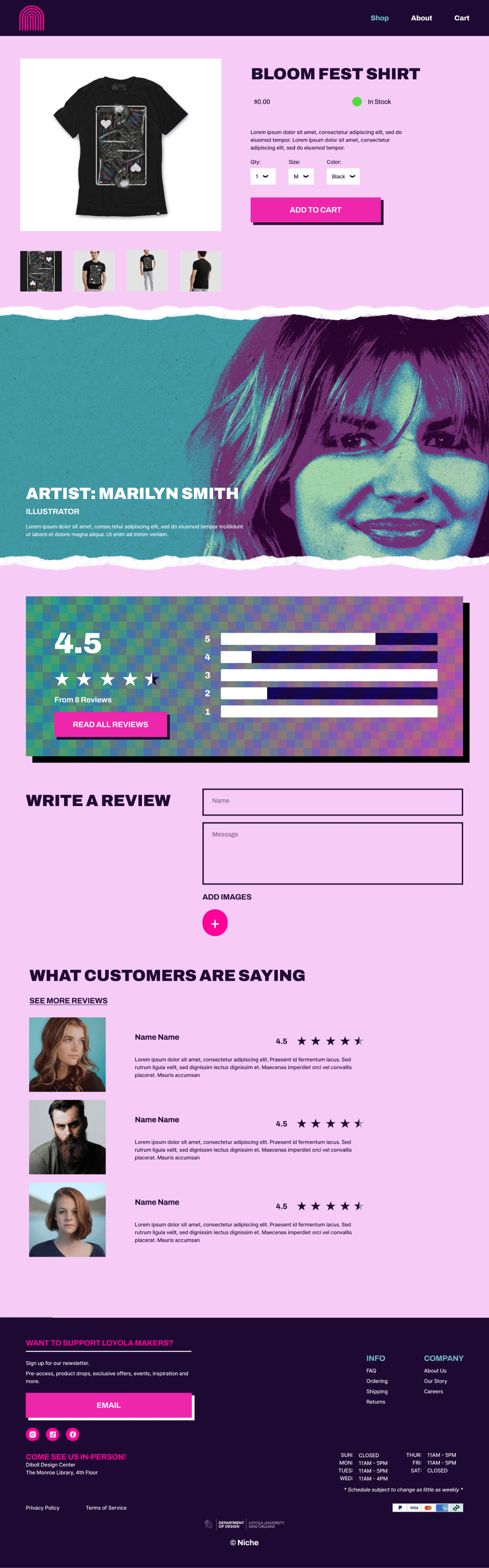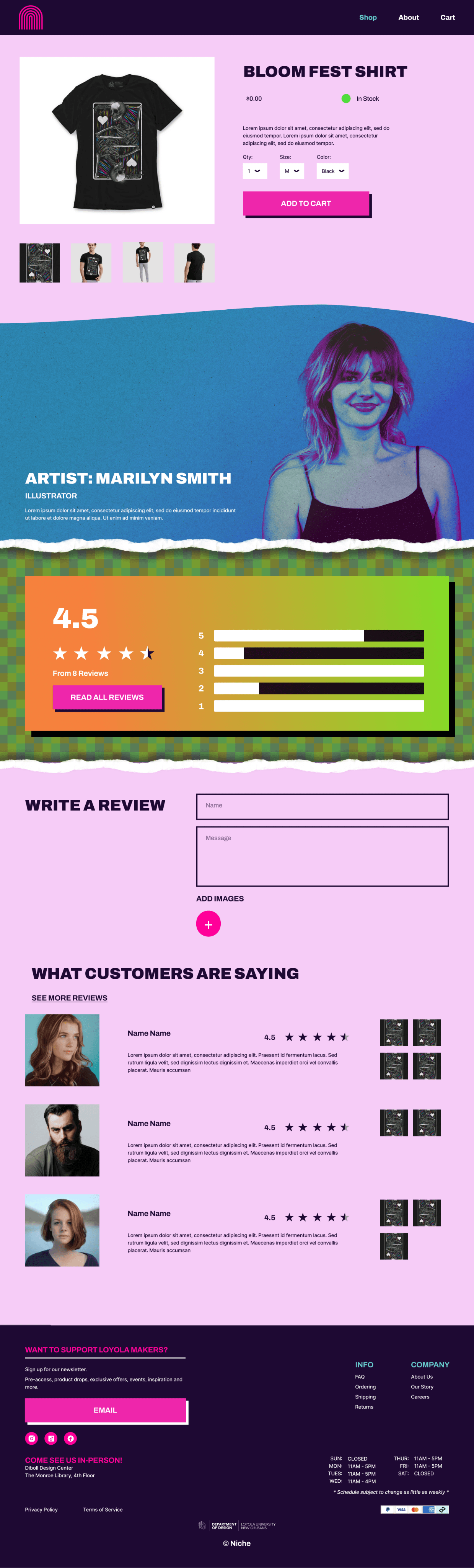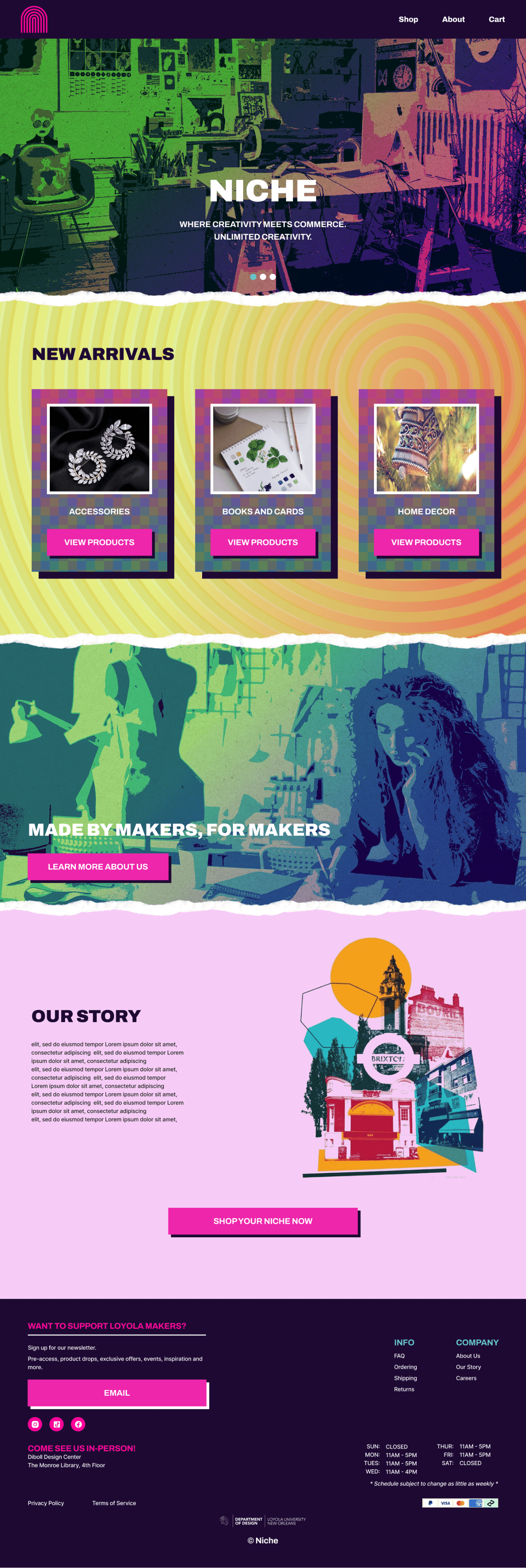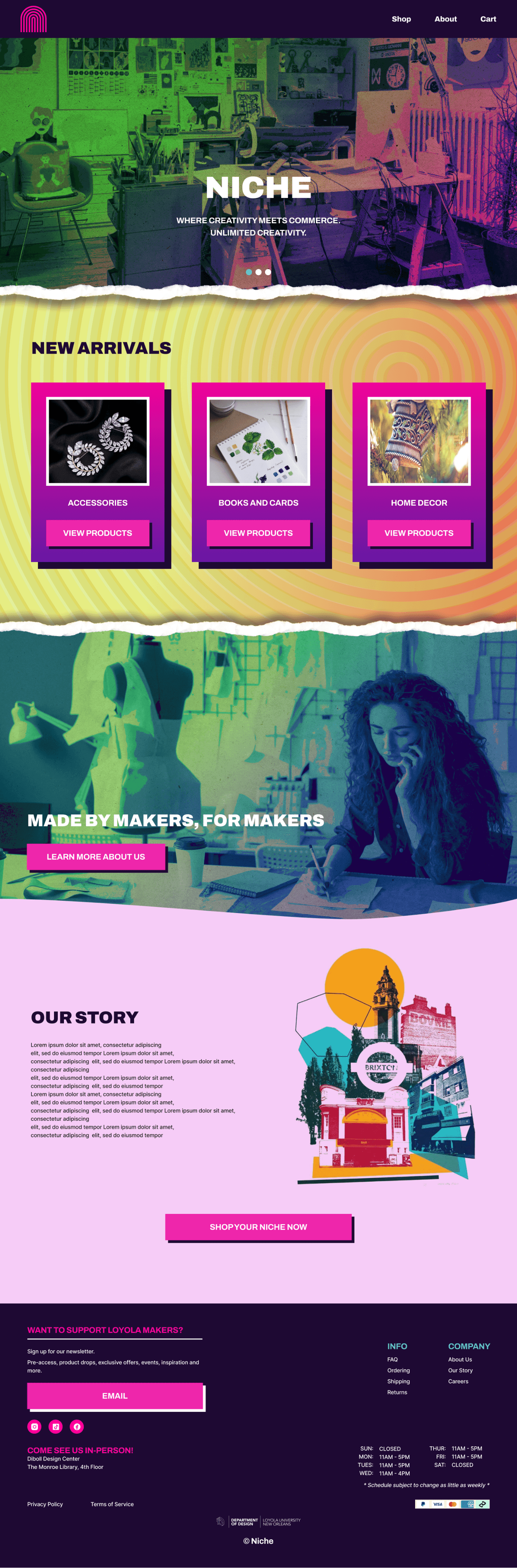 Create a website for our Loyola University New Orleans’ Niche shop, which specializes in selling handmade designs