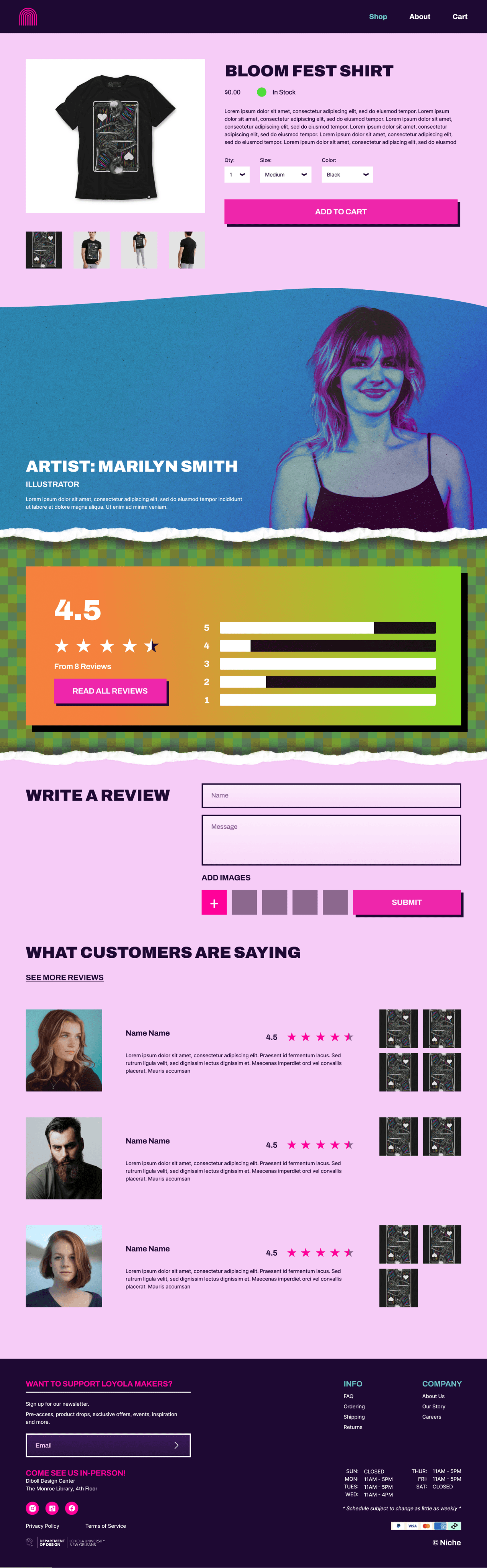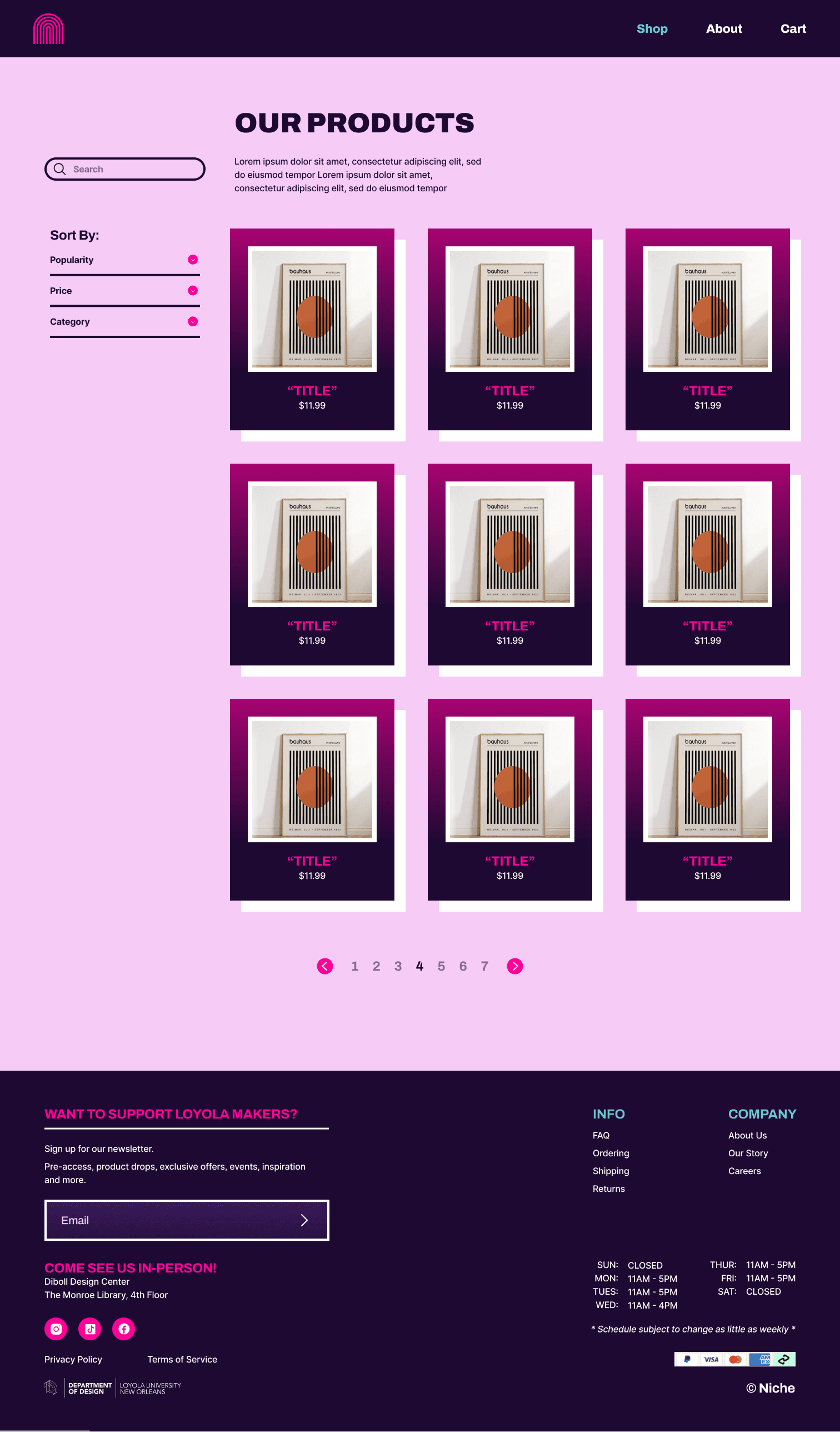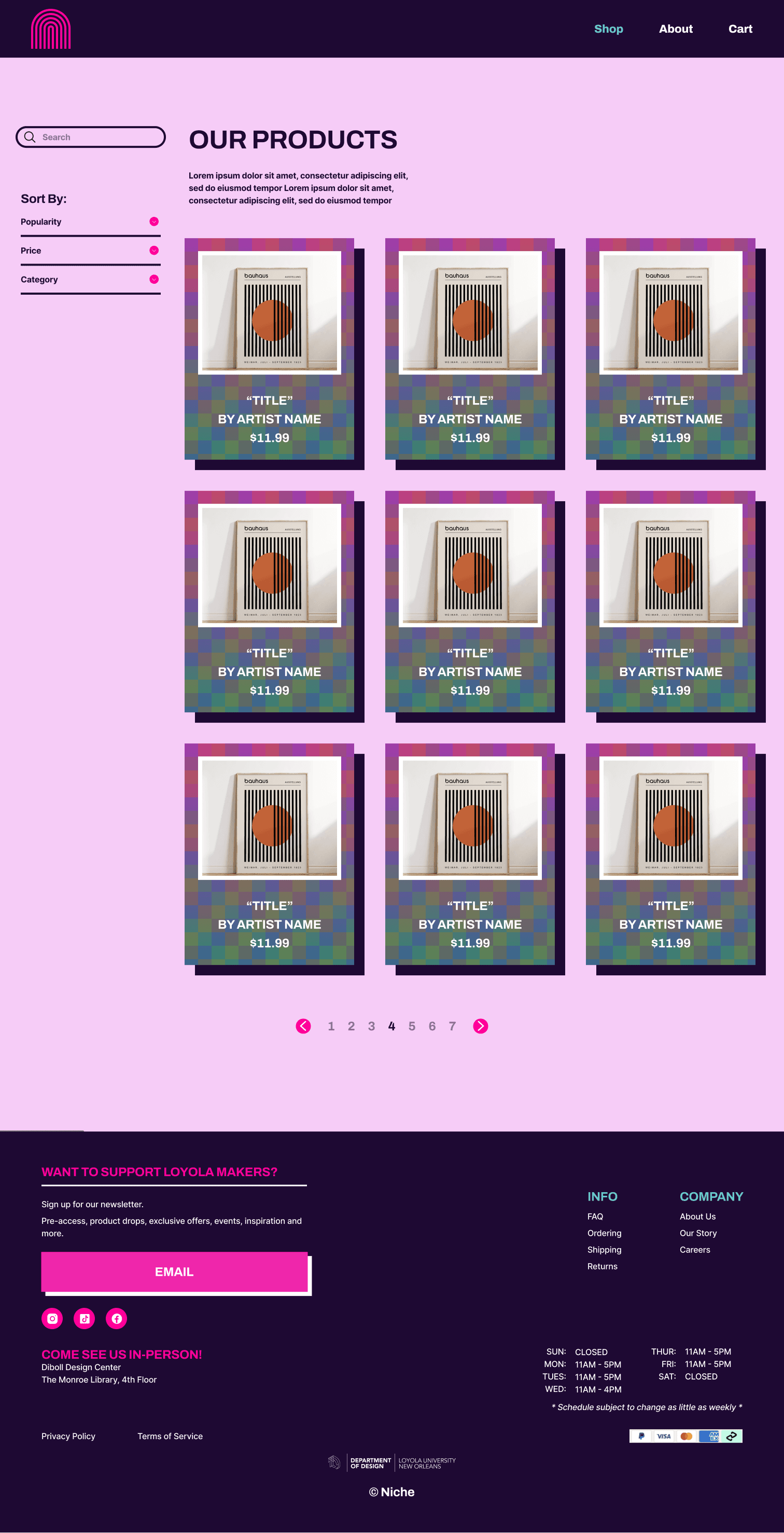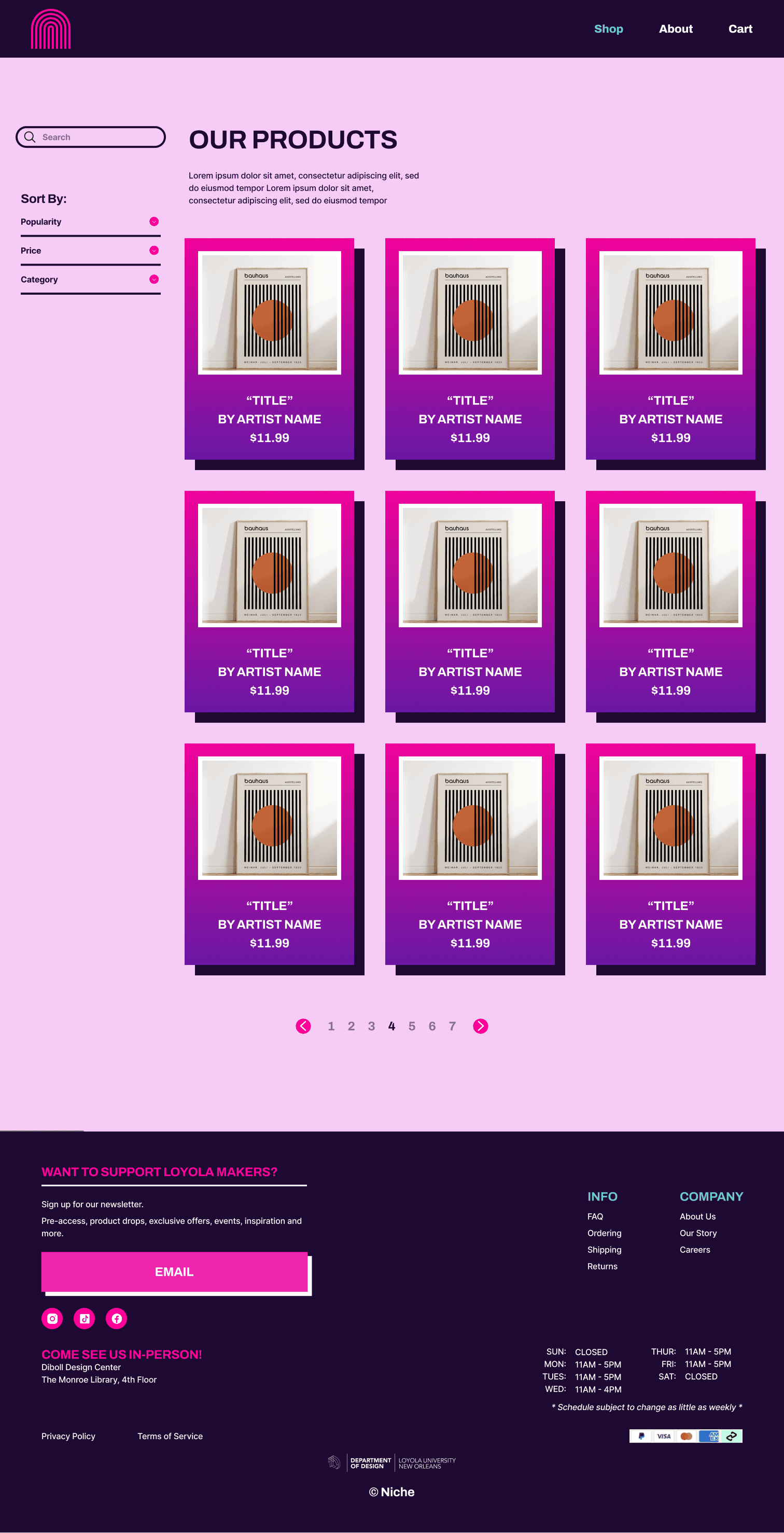 Create a website for our Loyola University New Orleans’ Niche shop, which specializes in selling handmade designs