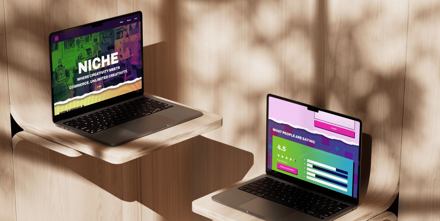 Although the product cards were simplified, the gradient was very saturated and still drew attention. Additionally, my instructor suggested including the Niche logo into my patterns for stronger branding.
