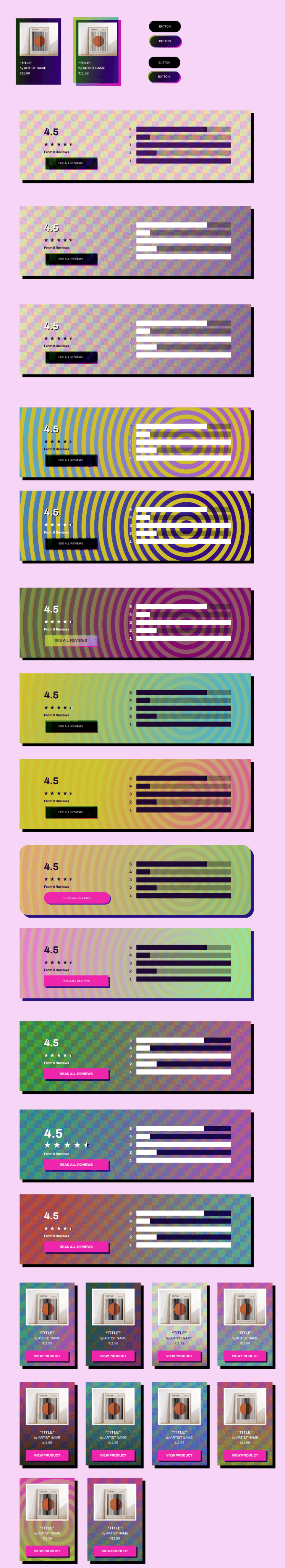Moodboard - Button iterations - Review section and product card iterations