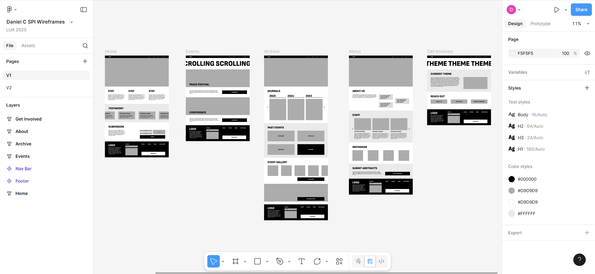 While we had access to one of SPI’s journals and understood their campus projects, we were not sure if they had established branding or specific site features in mind. As it turned out, they had a logo and palette but were open to seeing other possibilities. Our plan was to design the main pages and leave complex features like journal integration to an intern next semester. Due to time constraints, we couldn’t build a functional website, but we delivered SPI several unique layouts and brand interpretations to continue with.