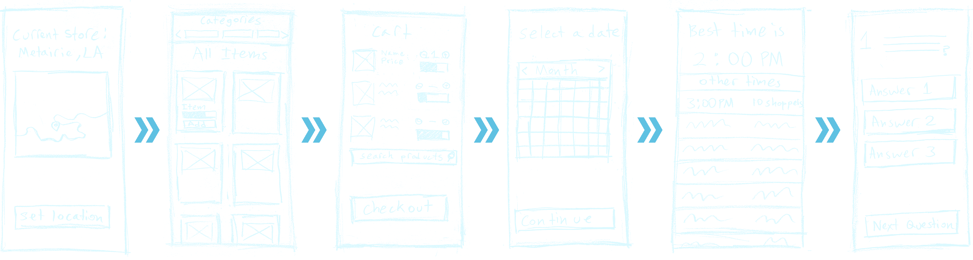 Early brainstorming explored two paths: making the crowded experience more enjoyable, or reducing in-store traffic. Some concepts — like gamified checkout rewards or social trivia during wait times — were inventive, but ultimately would have added complexity and slowed things down further.
